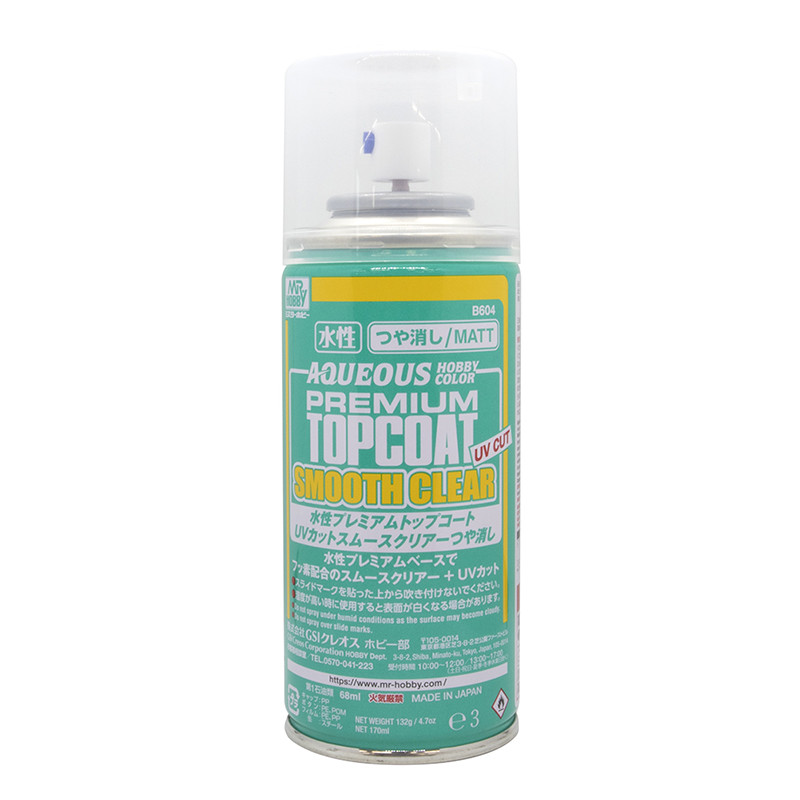 Mr. Premium Top Coat Flat od spoločnosti Gunze Sangyo (Mr. Hobby) je vysoko kvalitný matný bezfarebný lak v spreji určený na finálnu úpravu povrchu plastikových modelov. Vďaka UV filtru samotný lak ani farby pod ním vplyvom slnečného žiarenia v priebehu času nedegradujú.