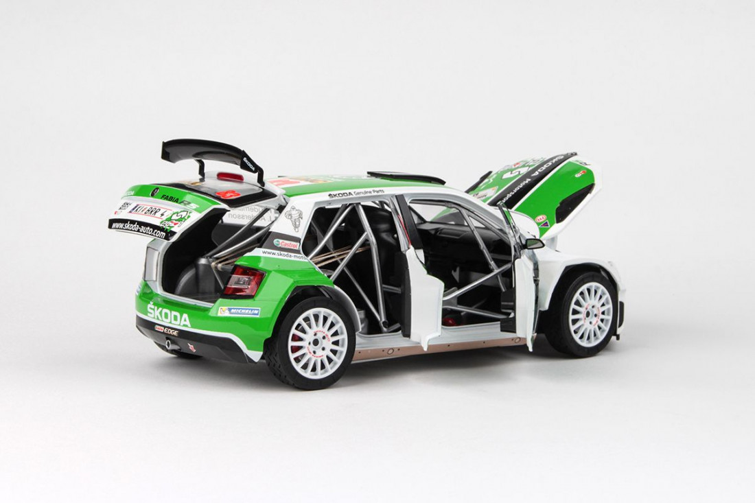Kovový zberateľský model súťažného špeciálu Škoda Fabia III R5 (2015) vyrobený v špičkovej kvalite. Detailne spracovaný exteriér, interiér aj motorový priestor vozidla. Perfektná povrchová úprava. Vyrobených iba 100 kusov!