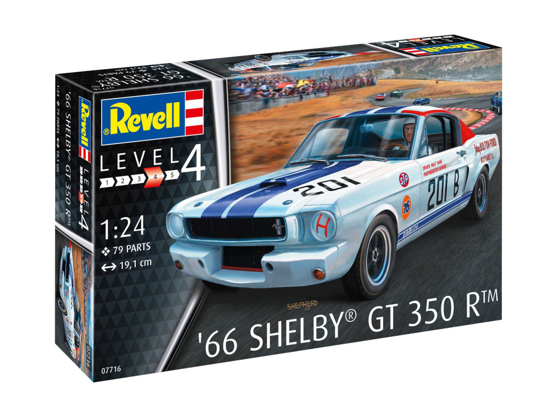 Plastiková stavebnica klasického amerického závodného vozidla Shelby GT 350 R z roku 1966. Automobil z dielne legendárneho Carolla Shelbyho predstavoval vylepšenú verziu už aj tak pôsobivého Fordu Mustang.