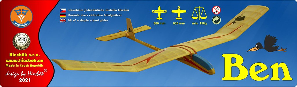 Poslať otázkuŠkolský model Ben - vstupenka do sveta kategórie A3. Model Ben je ďalším z radu klasických školských modelov určených pre začínajúcich modelárov. Bol navrhnutý tak, aby si s jeho stavbou poradil aj mladý modelár okolo 10 rokov veku, ktorý má už skúsenosť s poťahovaným modelom.