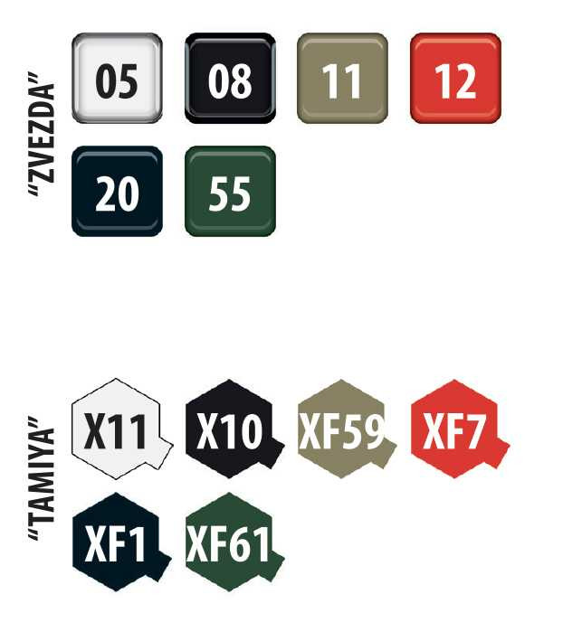 Potrebné farby Tamiya: