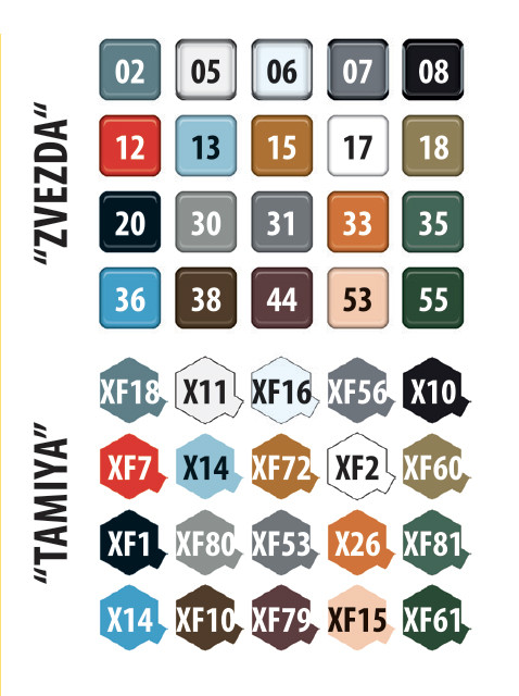 Potrebné farby Tamiya: