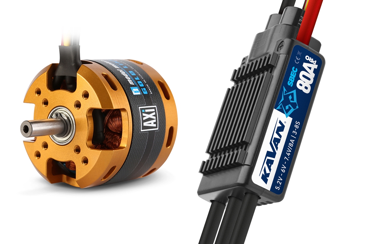 Combo set striedavého elektromotora AXI V2 a regulátora otáčok Foxy G2 pre modely typu tréner do hmotnosti 7000 g a akrobatov do hmotnosti 4300 g. Napájanie Lixx 4S, hriadeľ s priemerom 8 mm. Dodávané vrátane klieštinového unášača.