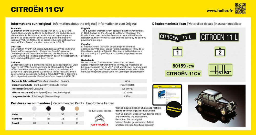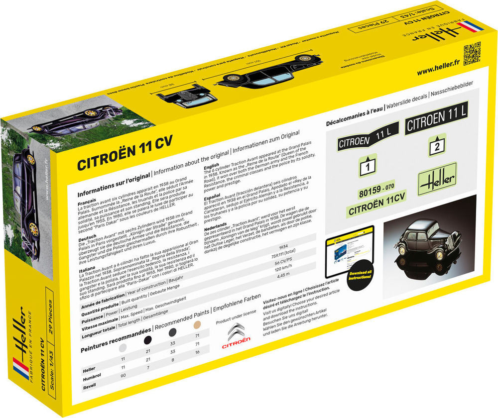 Výroba vozidiel Citroën 11CV, ktoré patrili k najvydarenejším francúzskym automobilovým konštrukciám, prebiehala v rokoch 1934 až 1957. Ľahké šasi spolu s nízko položeným ťažiskom a torznými tyčami odpruženým podvozkom poskytovali vynikajúce jazdné vlastnosti. Vozidlo bolo hojne využívané francúzskou armádou, pričom po kapitulácii Francúzska padlo mnoho z týchto automobilov do rúk Nemcov. Citroën 11CV tak slúžil v celej Európe, Rusku aj severnej Afrike.