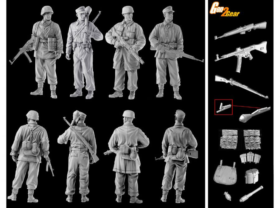 Poslať otázkuStavebnica obsahujúca plastikové výlisky pre stavbu 4 figúrok príslušníkov nemeckej pechoty z obdobia záverečných fáz 2. svetovej vojny. Figúrky zaujímajú rôzne autentické pozície. Súčasťou stavebnice je aj výzbroj a výstroj.