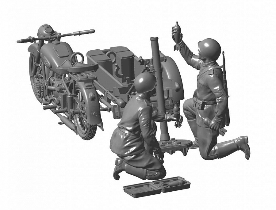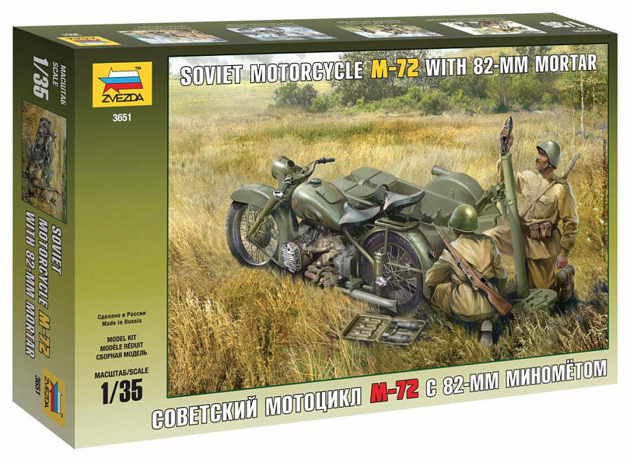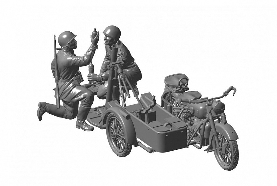Plastiková stavebnica sovietskeho WWII motocykla M-72 s mínometom a obsluhou.