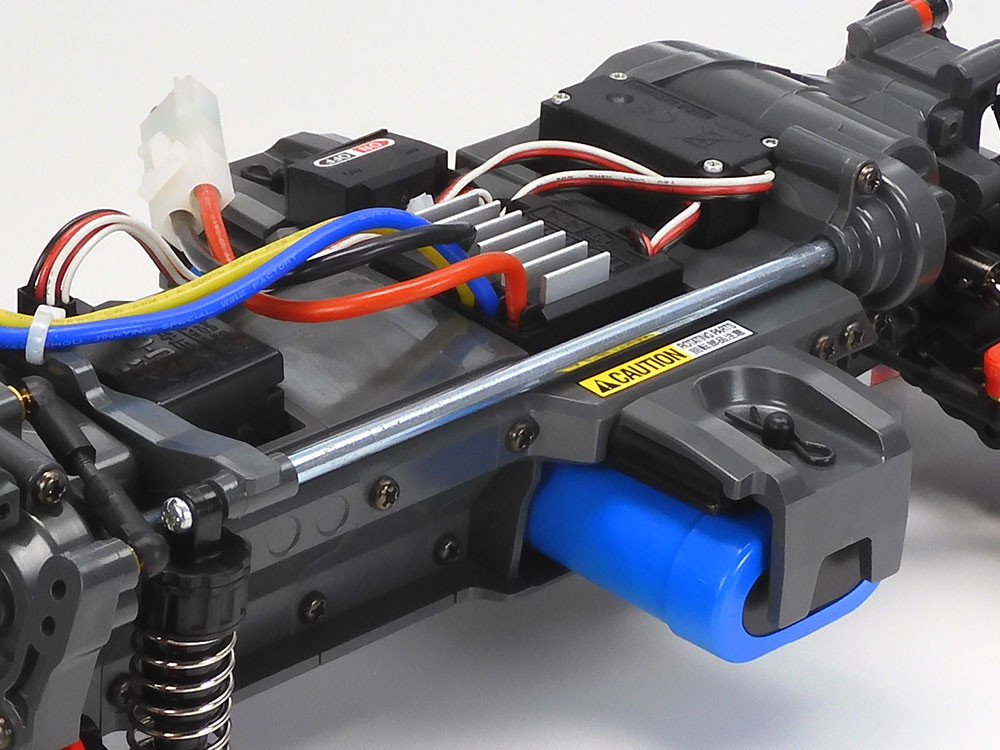 Šasi MF-01X je tvořeno kompaktním, lehkým a odolným odlitkem ze speciální pryskyřice. Převody, pohonná jednotka, servo řízení, přijímač jsou v šasi umístěny s přihlédnutím k optimálnímu rozložení hmotnosti a dosažení nízkého těžiště. Samozřejmostí je přední a zadní diferenciál, dvojité nezávislé zavěšení všech kol nebo třecí tlumiče. Osmipaprsková litá kola v modrém provedení jsou obuta do pneumatik s autentickým dezénem.