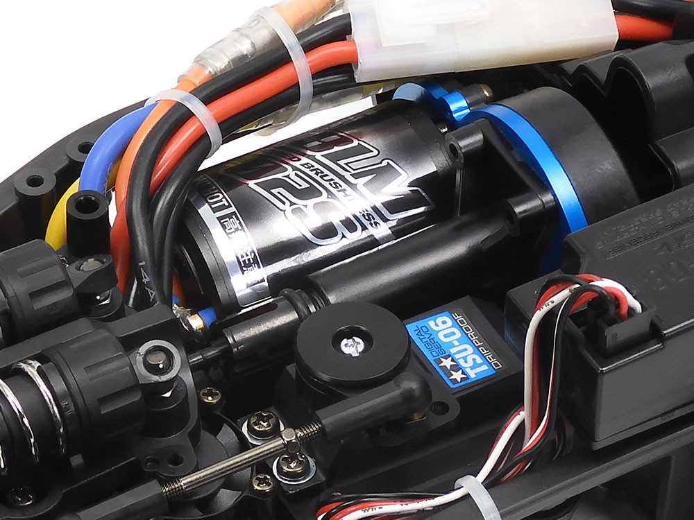 Ke zprovoznění modelu budete potřebovat alespoň dvoukanálovou RC soupravu (vysílač, přijímač a servo řízení), stejnosměrný motor řady 540, regulátor otáček, pohonný šestičlánek 7,2 V a odpovídající nabíječ. K realizaci povrchové úpravy karoserie doporučujeme použít spreje Tamiya na lexanové karoserie. Fotografie elektrosoučástkek jsou pouze ilustrační, nejsou součástí balení.