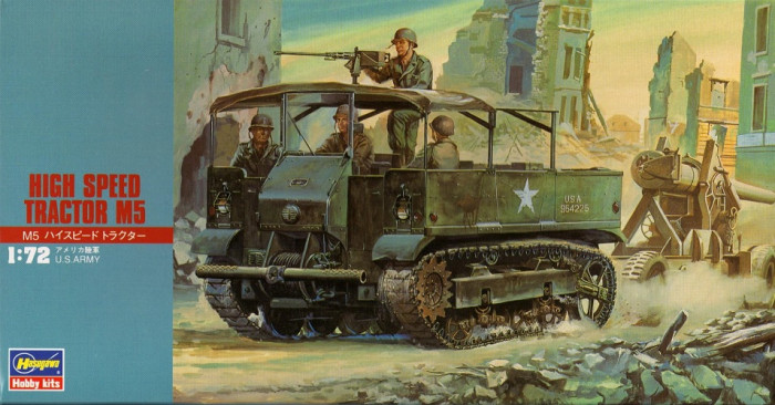 Jednoduchá plastiková stavebnica WWII delostreleckého ťahača, ktorý vychádzal z ľahkého amerického tanku M5 Stuart.