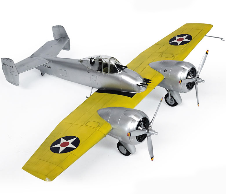 Plastiková stavebnica prototypu amerického palubného stíhacieho lietadla Grumman XF5F-1 Skyrocket.