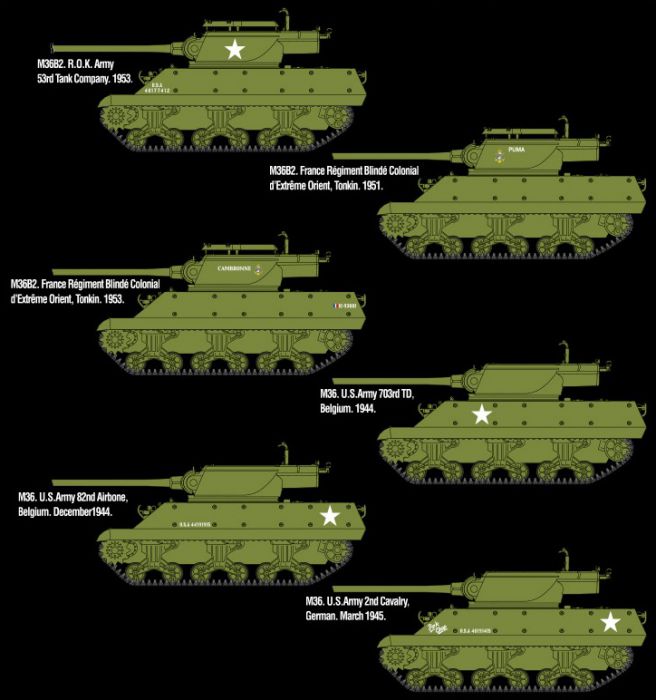 Poslať otázkuStíhač tankov M36 bol vyvinutý v USA na základe požiadaviek americkej armády na rýchly stroj, ktorý by dokázal ničiť aj tie najmodernejšie a najťažšie obrnencov nemeckej armády. Prvé stroje sa dostali k jednotkám v roku 1944, kedy sa zúčastnili predovšetkým bojov v Európe. Verzia označovaná ako M36B2 využívala korbu stíhača tankov M10, pohon obstarával dieselový motor General Motors 6046. Tieto stíhače tankov boli prevádzkované ešte dlho po skončení 2. svetovej vojny.
