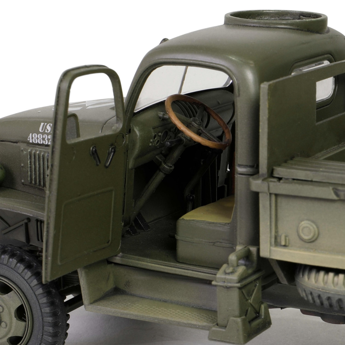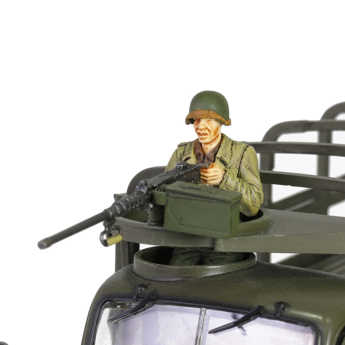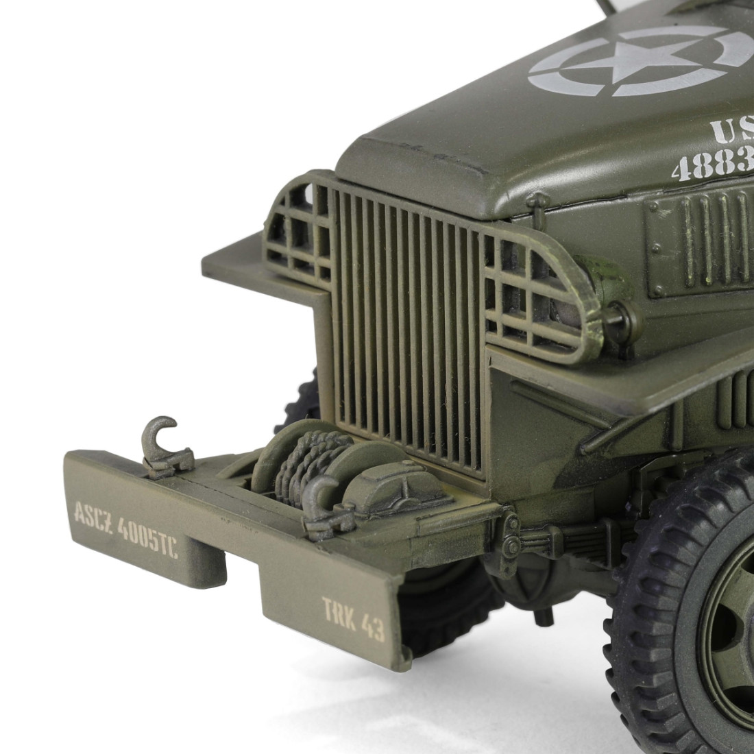 Veľmi pekne spracovaný kovový model amerického druhoválečného nákladného automobilu GMC CCKW. Model ponúka množstvo prepracovaných detailov, a to vrátane sklopného zadného čela korby alebo funkčného natáčania kolies prednej nápravy. Dodávané s autentickým podstavcom, príslušenstvom a štyrmi realistickými figúrkami.
