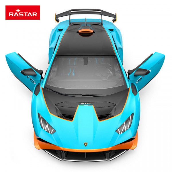 Diaľkovo ovládané superšportové vozidlo Lamborghini Huracán STO v mierke 1:14. Model, ktorý je určený najmä deťom, jazdí dopredu, dozadu a zatáča vľavo a vpravo. Auto má funkčné predné a zadné svetlá. Veľmi kvalitné spracovanie, nezávislé odpruženie kolies a dobré jazdné vlastnosti.