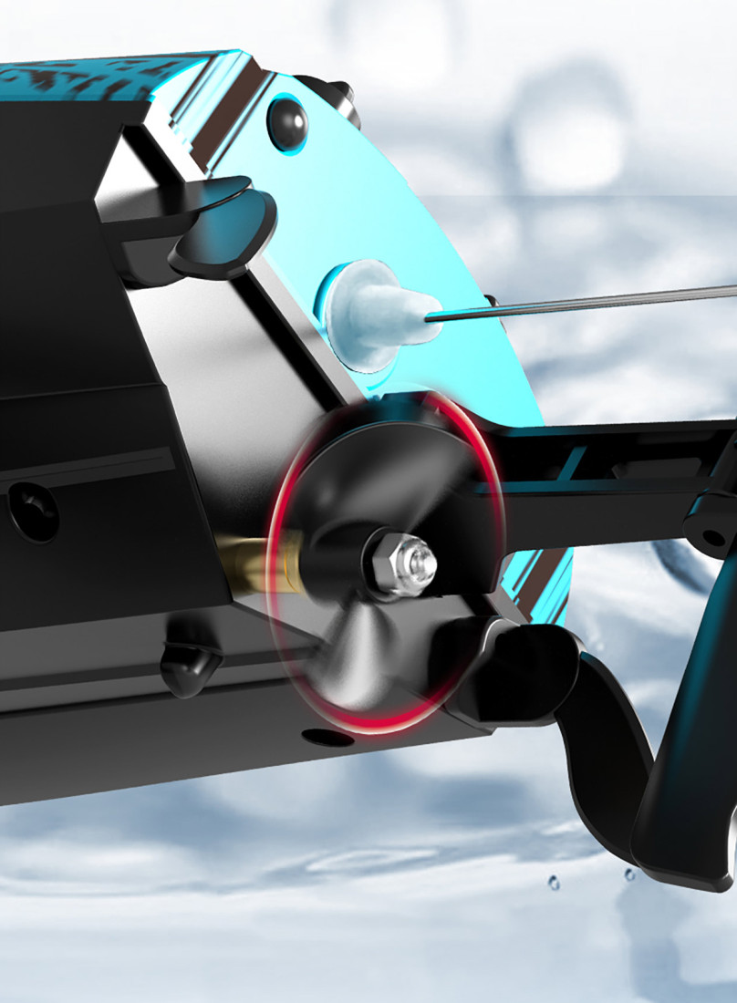 - lodní šroub se roztočí pouze tehdy, pokud je člun ponořen ve vodě, což minimalizuje riziko poranění;