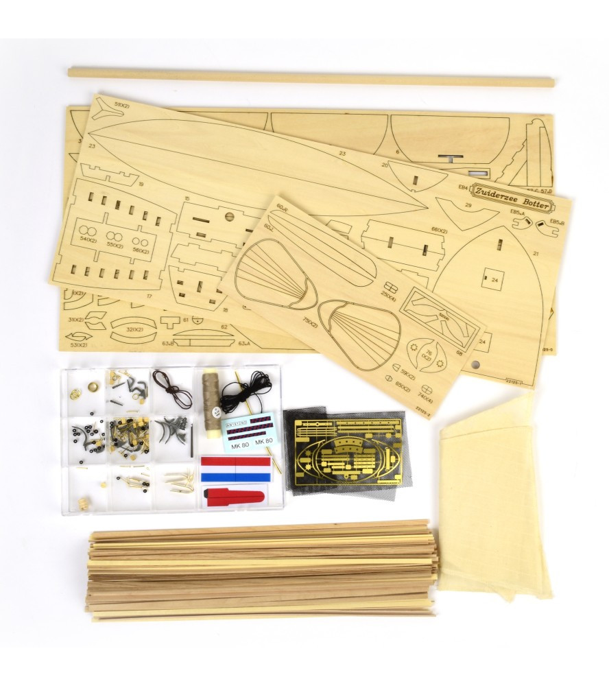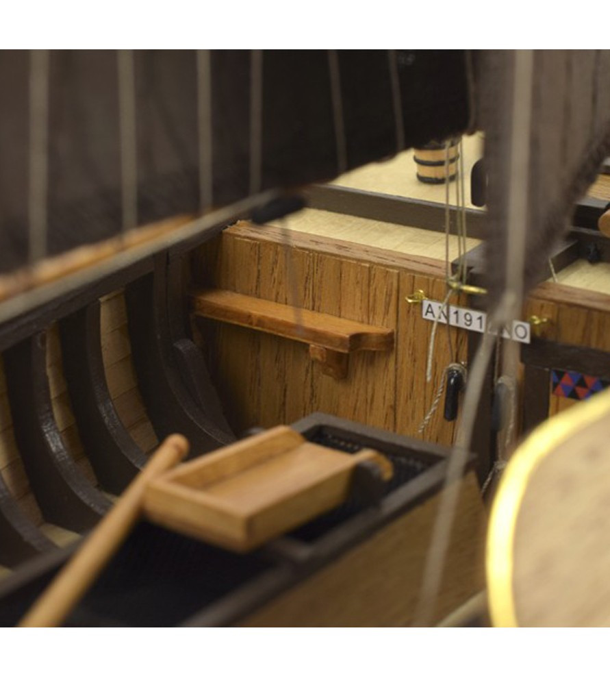 Stavebnica obsahuje laserom vyrezávané diely z preglejky, diely z masívneho dreva, lišty na plankovanie trupu, ďalej potom doplnky z mosadze a liateho kovu, fotolepty, nite, šité bavlnené plachty, vlajku a diely na stavbu stojanu.