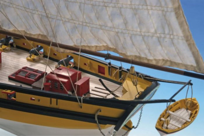 Nádherná drevená stavebnica neplávajúcej makety korzárskej lodi Le Renarda Roberta Surcoufa v mierke 1:50 od renomovanej firmy Artesanía Latina. Konštrukcia modelu využíva falošný kýl a rebrá, podobne ako je tomu u skutočnej lodi. Trup sa stavia klasickou technológiou plankovaním kostry. Stavebnica obsahuje presné laserom vyrezávané dielce z dreva a preglejky, dyhové pásky na oplankovanie paluby, mosadzné a liatinové príslušenstvo (napr. kotvy a kanóny), ušité plachty s autentickou štruktúrou, priadze, klinčeky a všetky ostatné stavebné materiály.