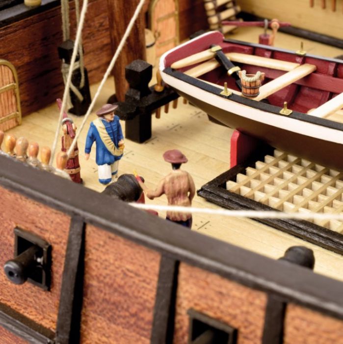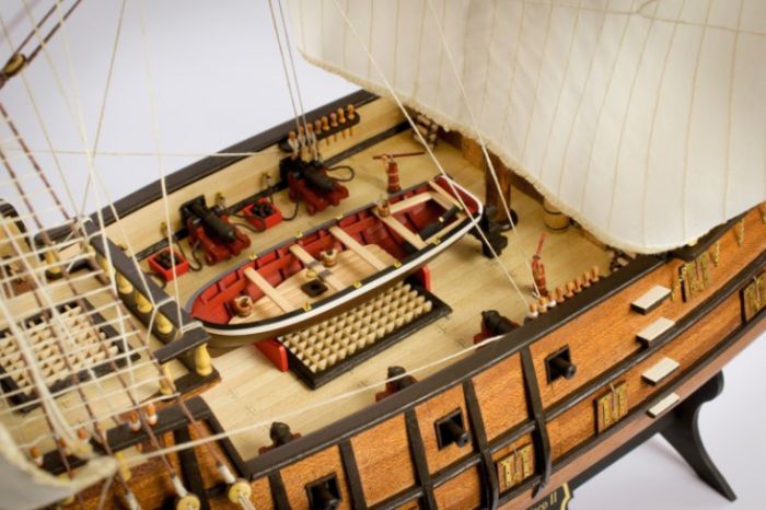 Součástí stavebnice není lepidlo, čirý lak, barvy, tmel ani pracovní nástroje nezbytné pro stavbu. Kompletaci modelu významně usnadňuje přiložený výkres v měřítku 1:1 a názorný obrázkový návod na DVD, který provází stavbou galeony krok za krokem. Tato stavebnice je vhodná pro pokročilé lodní modeláře, kteří již mají se stavbou podobných modelů patřičné zkušenosti.