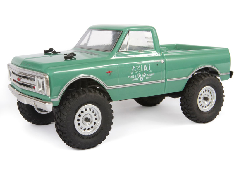 RC model auta na diaľkové ovládanie v mierke 1:24 Axial SCX24 s karosériou Chevrolet C10 1967, pohonom všetkých kolies 4WD v prevedení RTR. Model je zostavený a pripravený k jazde, všetko potrebné je v balení.