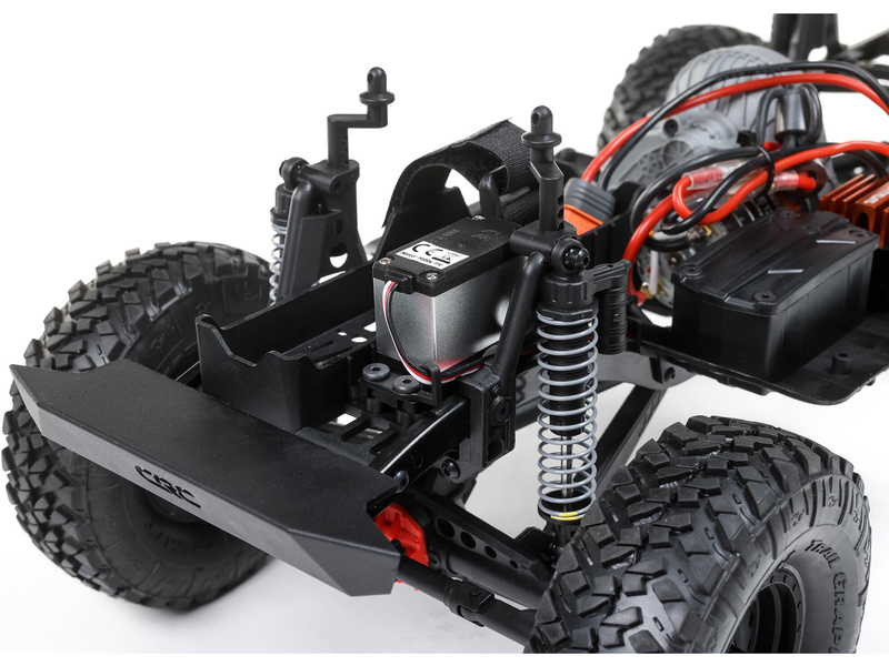 Realistické, vysoko pevné šasi SCX10 ™ II je zostavené z oceľových C-pozdĺžnikov s priečnymi výstuhami pre zvýšenie tuhosti. Tvarovaná klzná doska výrazne znižuje zasekávanie a vďaka zjednodušenému dizajnu je údržba rýchla a jednoduchá. K dispozícii je tiež nastaviteľný držiak na karosériu, nastaviteľné držiaky na nárazník s upevňovacími bodmi stabilizátorov a lôžko serva pre voliteľnú 2-rýchlostnú prevodovku a navijak.