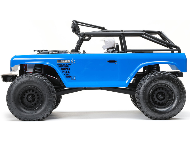 Obsahom balenia je zostavený RC model auta Axial SCX10 II Deadbolt 4WD s nainštalovanými komponentmi: jednosmerný motor Dynamite 540 35T, jednosmerný regulátor Spektrum 40A, servo riadenia Spektrum S614. RC vysielač Spektrum SLT2 a RC prijímač Spektrum SLR300, 4 AA batérie do vysielača. Balíček s plastovými dielmi. Návod CZ, EN, DE, FR a IT.