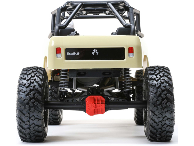 RC model auta Axial SCX10 II Deadbolt v mierke 1:10 a náhonom 4WD je kompletne zostavený a pripravený na jazdu. Medzi oceľové pozdĺžniky rámu je nainštalované šasi s prevodovkou, držiaky náprav, nárazníky a RC vybavenie. Hotová karoséria, RC súprava. Model dosahuje rýchlosť až 5 km/h. Približná doba jazdy na LiPo akumulátor 7.4 V 5000 mAh je až 2 hodiny.