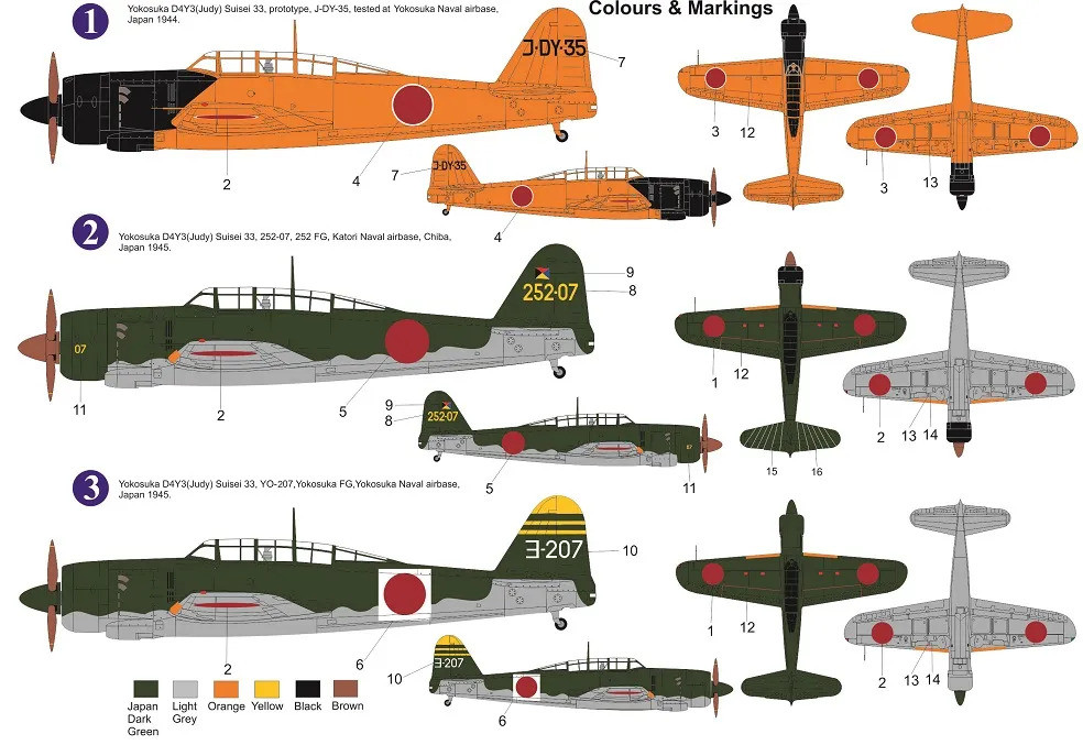 Plastiková stavebnica japonského WWII palubného strmhlavého bombardéra Yokosuka D4Y3 Suisei 33.
