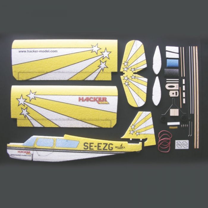 Čas zostavenia len niekoľko hodín. Veľká plocha krídel zaisťuje vynikajúce letové vlastnosti. Štartovať je možné z hladkého povrchu alebo hodením z ruky. Ľahko ovládateľné pri pristátí. Modely sú potlačené ako na obrázkoch, nie sú potrebné žiadne samolepky. Hlavný podvozok možno jednoducho vybrať pri lietaní na tráve. Ovládané funkcie - motor, krídelká, smerovka, výškovka. Pohon striedavým elektromotorom. Pohon elektromotorom SPRINT 400 a 7 článkovou batériou NiMH alebo 2 článkovou Li-Ion.