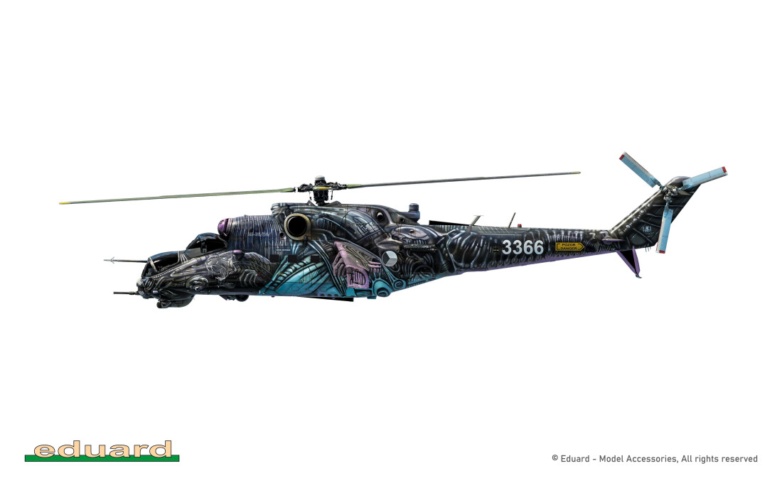 Stavebnica sovietskeho bojového vrtuľníka Mil Mi-35 edícia Limited Edition v mierke 1/48. Zo stavebnice je možné postaviť tento vrtuľník českého letectva v kamufláži z roku 2016 špeciálne namaľovanej k Tiger Meetu v španielskej Zaragoze.