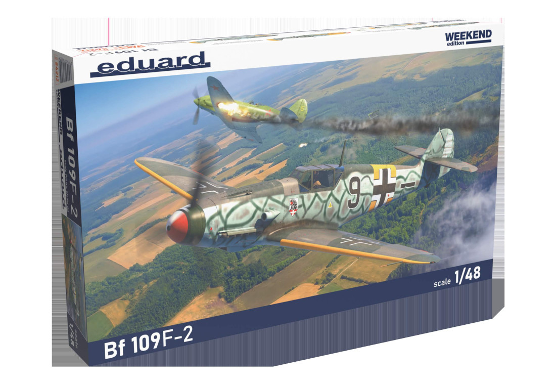 Plastiková stavebnica nemeckého druhoválečného stíhacieho lietadla Messerschmitt Bf 109 F-2. Edícia WEEKEND v mierke 1:48.