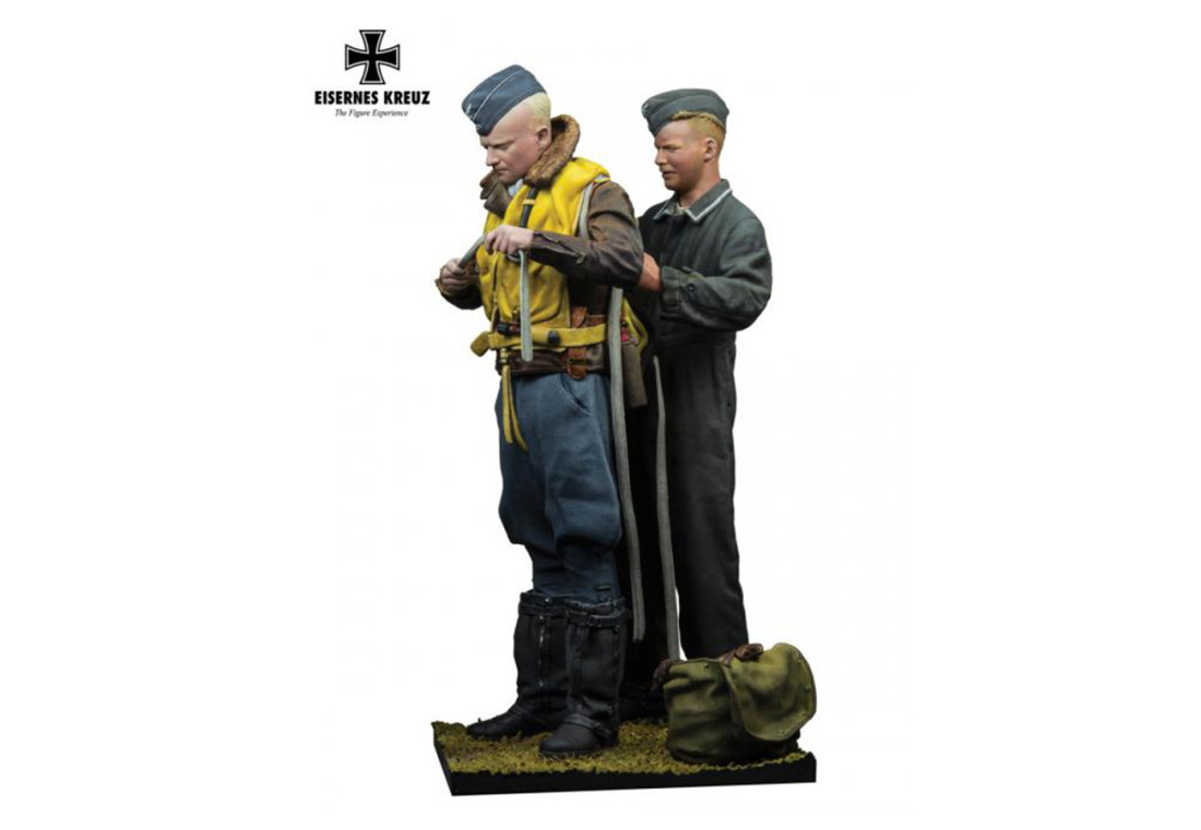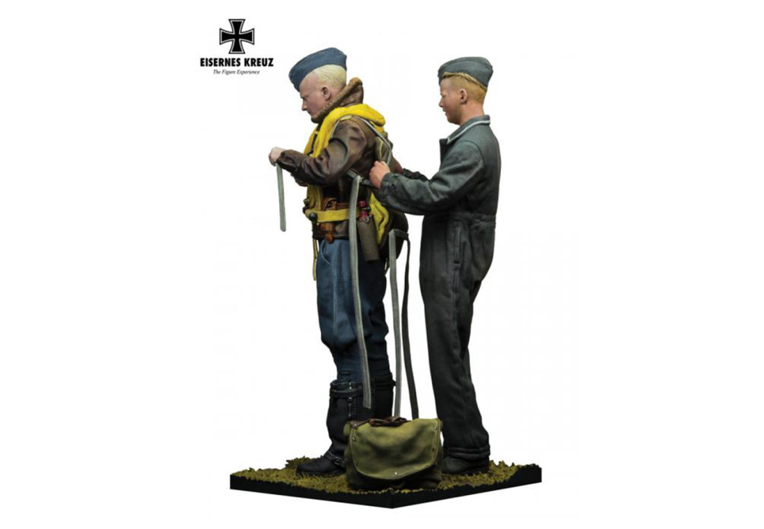 Set „Der Adler, 1940“ byl navržen podle slavné dobové fotografie z německého válečného časopisu Signal. Zachycuje autentický moment z letiště, kdy poddůstojník (NCO) pomáhá stíhacímu pilotovi Luftwaffe s nasazováním záchranné vesty, která byla součástí výstroje pro lety nad mořem. Figurky vynikají detailním zpracováním dobových uniforem, letecké výstroje i výrazů tváří, což z nich činí ideální doplněk pro diorámata se stroji jako Messerschmitt Bf 109 nebo Focke-Wulf Fw 190 z období bitvy o Británii.