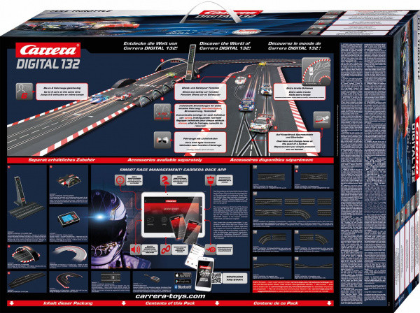 DIGITAL 132 – digitálna autodráha umožňujúca jazdu 6 áut v jednej dráhe a ich vzájomné prechádzanie. Carrera znamená v španielčine závod, a jedno vám môžeme zaručiť – akonáhle rozbalíte škatuľu s logom Carrera, rozprúdi sa vaša závodná krv na najvyššie otáčky, a je jedno na akom okruhu as akým autom budete práve pretekať. Tento pocit zažívajú tisíce fanúšikov už od roku 1963, kedy značka Carrera uviedla na trh svoju prvú závodnú autodráhu. Počas nasledujúcich viac ako štyridsiatich rokov sa v oblasti autodráh, áut a príslušenstva Carrera prebojovala až na úplnú špičku. Dnes ponúka produkty najvyššej kvality, ktoré sú určené nielen deťom, ale aj dospelým, pre ktoré sa stali autodráhy hobby na celý život.