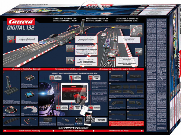 DIGITAL 132 – digitálna autodráha umožňujúca jazdu 6 áut v jednej dráhe a ich vzájomné prechádzanie. Carrera znamená v španielčine závod, a jedno vám môžeme zaručiť – akonáhle rozbalíte škatuľu s logom Carrera, rozprúdi sa vaša závodná krv na najvyššie otáčky, a je jedno na akom okruhu as akým autom budete práve pretekať. Tento pocit zažívajú tisíce fanúšikov už od roku 1963, kedy značka Carrera uviedla na trh svoju prvú závodnú autodráhu. Počas nasledujúcich viac ako štyridsiatich rokov sa v oblasti autodráh, áut a príslušenstva Carrera prebojovala až na úplnú špičku. Dnes ponúka produkty najvyššej kvality, ktoré sú určené nielen deťom, ale aj dospelým, pre ktoré sa stali autodráhy hobby na celý život.