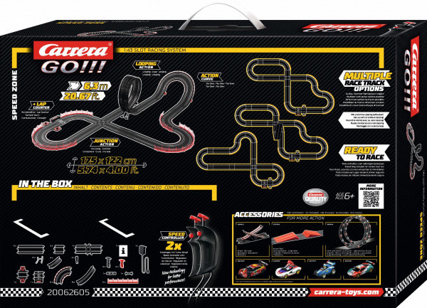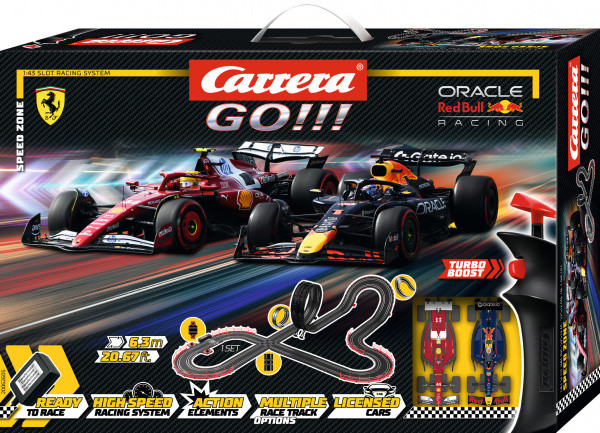 GO!!! – úvodný rad do sveta autodráh Carrera. Carrera znamená v španielčine závod a jedno vám môžeme zaručiť. Akonáhle rozbalíte škatuľu s logom Carrera, rozprúdi sa vaša závodná krv na najvyššie otáčky, a je jedno na akom okruhu as akým autom budete práve pretekať. Tento pocit zažívajú tisíce fanúšikov už od roku 1963, kedy značka Carrera uviedla na trh svoju prvú závodnú autodráhu. Počas nasledujúcich viac ako štyridsiatich rokov sa v oblasti autodráh, áut a príslušenstva Carrera prebojovala až na úplnú špičku. Dnes ponúka produkty najvyššej kvality, ktoré sú určené nielen deťom, ale aj dospelým, pre ktoré sa stali autodráhy hobby na celý život.