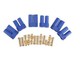 Dvojkolíkový silový konektor so pozlátenými 5mm kolíčkovými kontaktmi so zaťažiteľnosťou max. 90 A (dlhodobo 25 A). Pre káble s prierezom max. 5,3 mm2 (10 AWG). Prechodový odpor 0,40 mΩ, max. 500 V. Balenie obsahuje 3 kompletné pary konektorov EC3 vrátane domčekov.