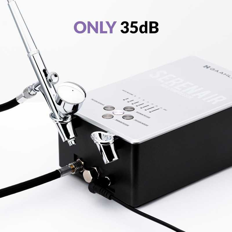 Kompletná a spoľahlivá sada dvojčinnej striekacej pištole Gaahleri a vzduchového minikompresora Ambition Series GTS-06 Serenair pre airbrush, ktorá je šitá na mieru plastikovým modelárom, umelcom či tvorcom diorámat.