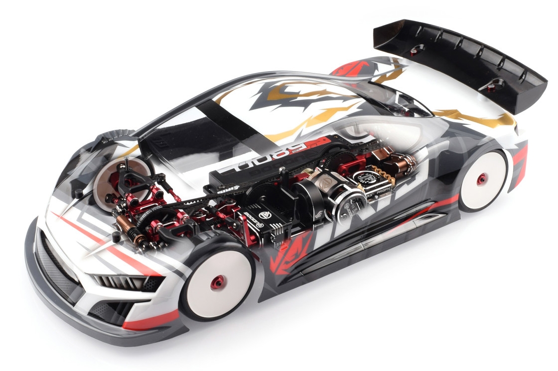Stavebnica závodného podvozka s pohonom 4x4 a uhlíkovým šasi v mierke 1:10.