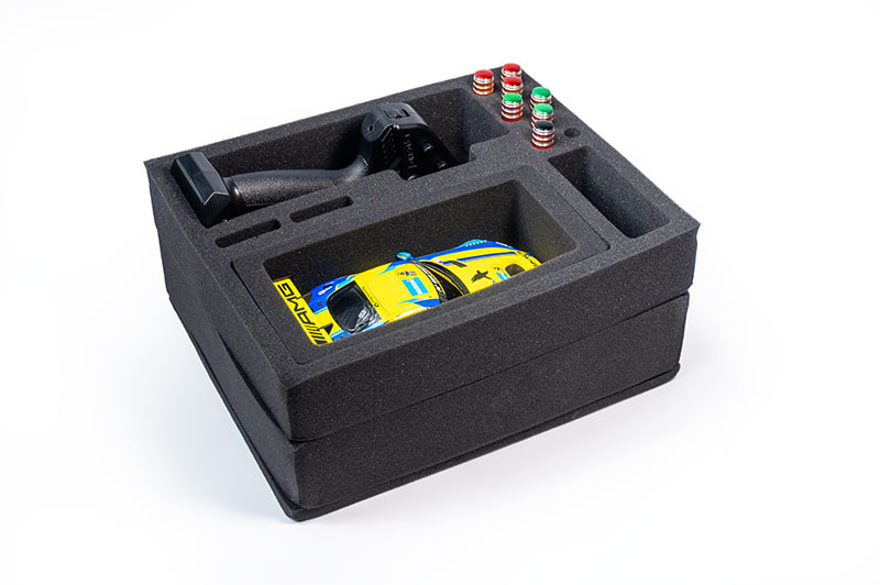- Všetko v jednom: Pojme vysielač, model auta (veľkosť až 195 × 90 × 110 mm), nabíjačku, náhradné batérie aj náradie.