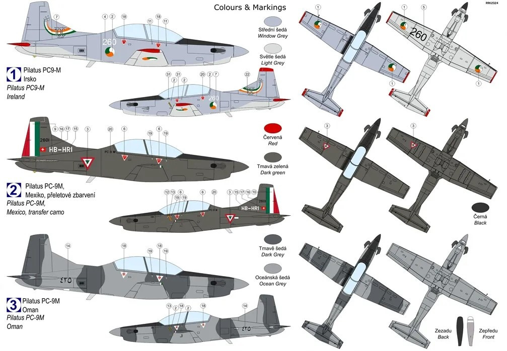 Plastiková stavebnica švajčiarskeho cvičného turbovrtuľového lietadla Pilatus PC-9M.