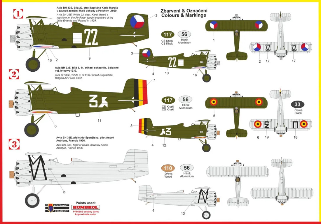 Plastiková stavebnica československého stíhacieho dvojplošníka Avia BH-33E, exportná a licenčne vyrábaná verzia s kovovou konštrukciou trupu.