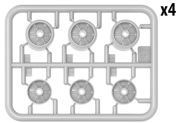Sada obsahuje nezmontovaný plastové modely cestných kolies tankov typu M3/M4.