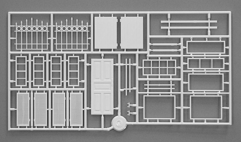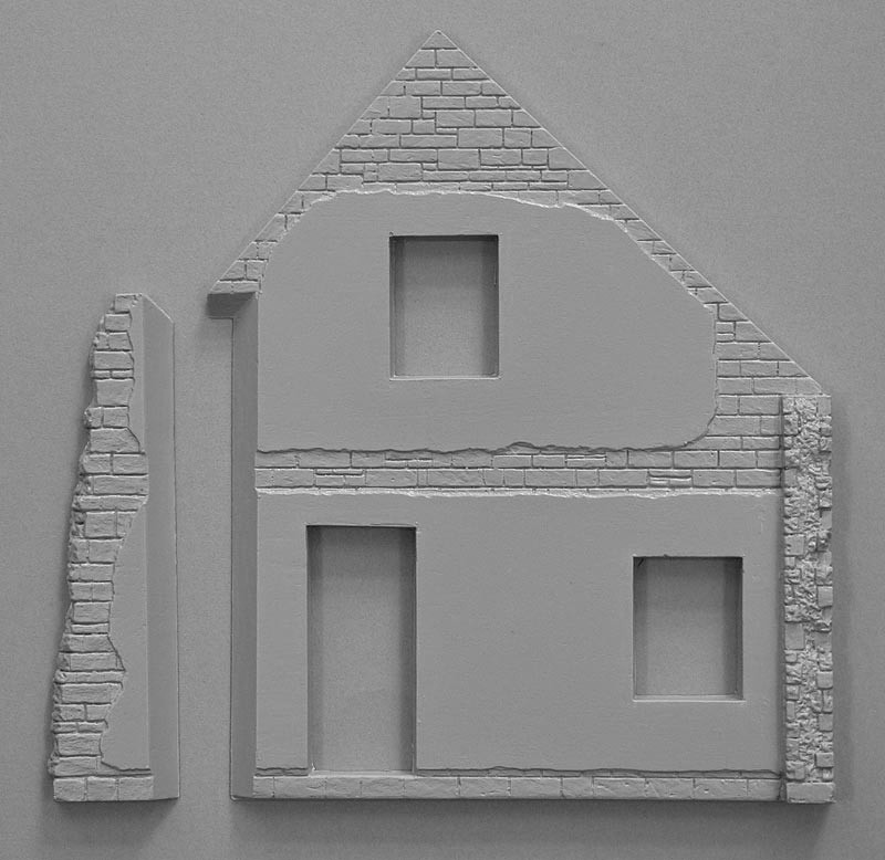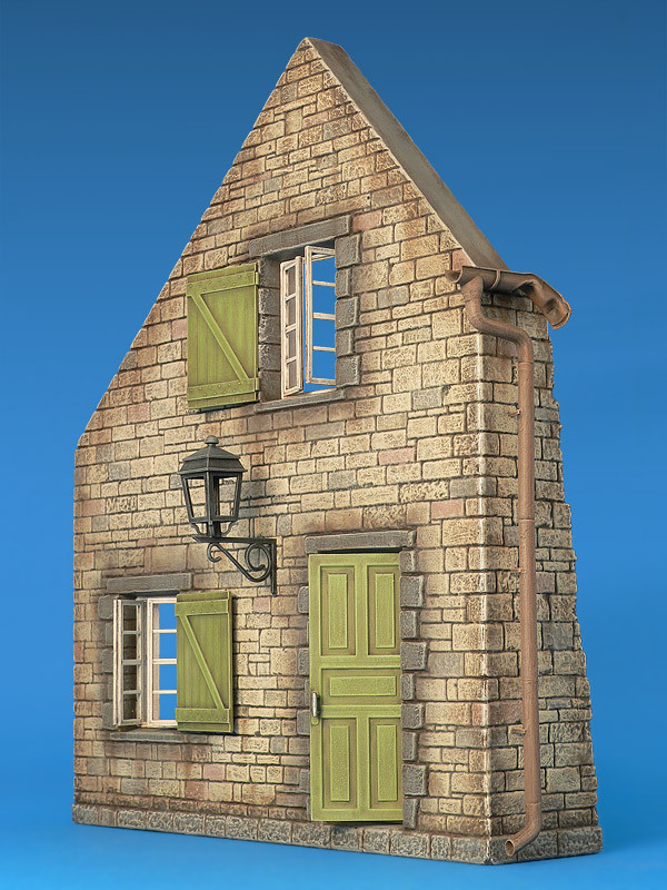 Sada obsahuje nezmontovaný a nenamaľovaný model zničeného dedinského domu.