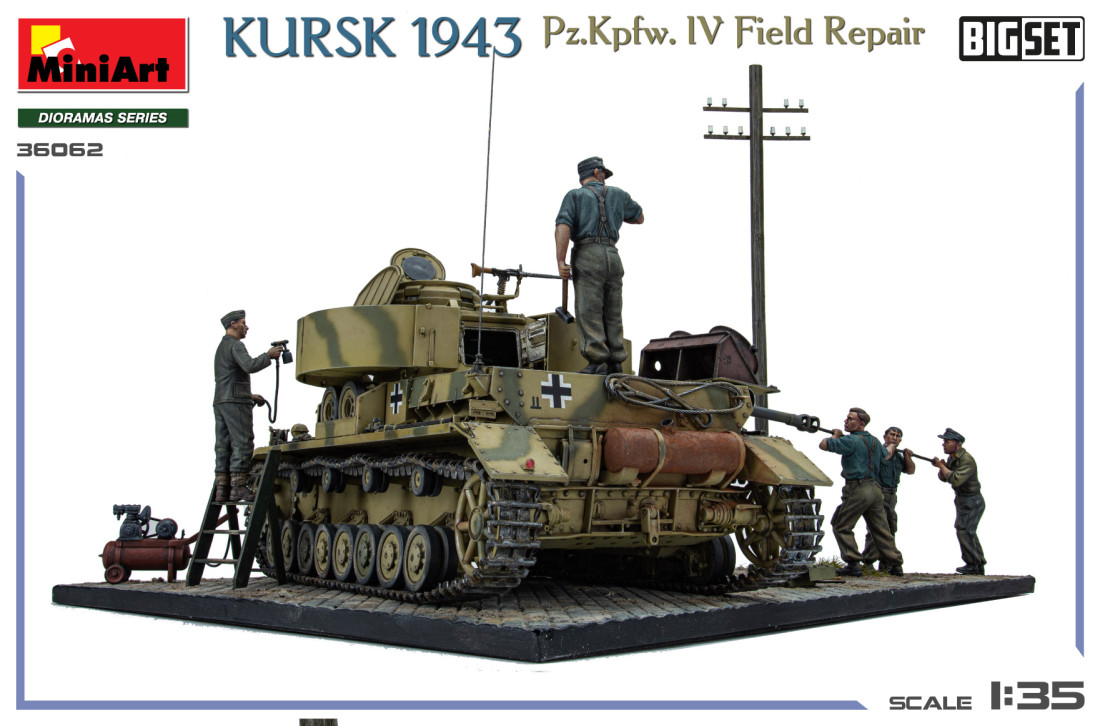 Tento pôsobivý set zachytáva scénu opráv nemeckého druhoválečného stredného tanku Pz.Kpfw.IV počas bitky pri Kursku v roku 1943. Zaujímavá kombinácia bojovej techniky, figúrok a civilných prvkov umožňuje zachytiť dynamické scény z obdobia 2. svetovej vojny.