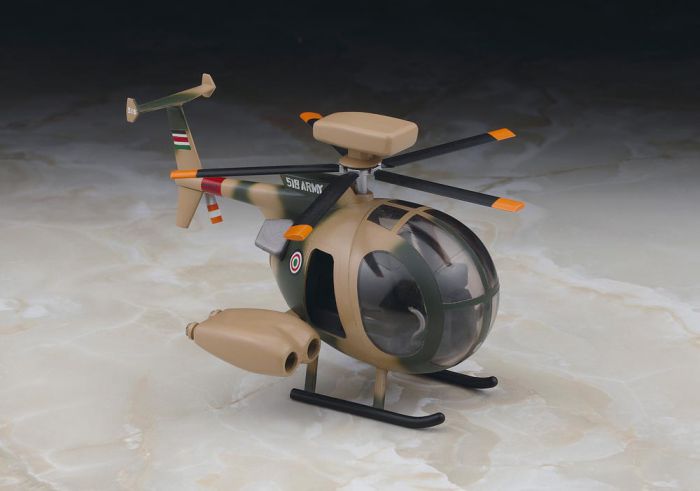 Plastikový model - karikatúra amerického ľahkého útočného vrtuľníka Hughes 500, limitovaná edícia.