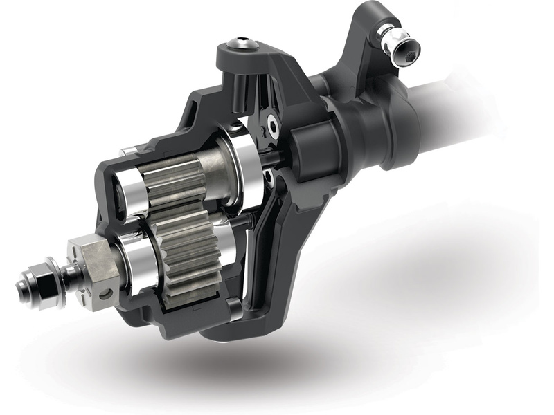 Trvalo uzatvorené diferenciály tohto ľahkého modelu vždy prenesú maximálny výkon na všetky kolesá bez prekĺznutia, vďaka čomu prejdete aj najťažším terénom.