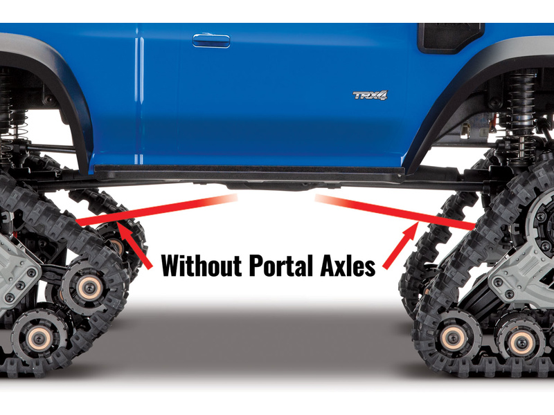 Šasi TRX-4 používa portálové nápravy s nápravovou prevodovkou. Nápravová prevodovka zvyšuje svetlú výšku, znižuje namáhanie prevodovky, kardanových hriadeľov. Ďalej sa znižuje torzná sila, takže model sa menej naklápa.